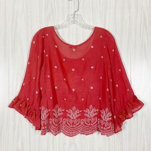 American Eagle | Pink Embroidered Bell Sleeve Blouse Size Small