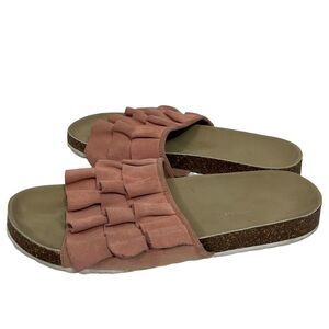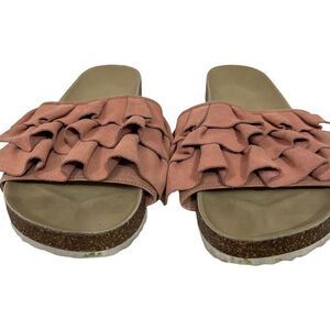 Gently worn women’s size 10-inner size tag removed American Eagle outfitters pink fringe slide on sandals. Some minor markings-please review any photos for any signs of wear. Comes from a smoke free home, bundle with other items to save & minimize shipping cost.