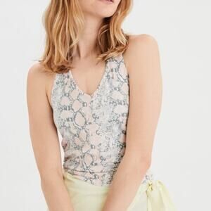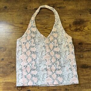 American Eagle Pink & Gray Snake Skin Pattern Halter Top