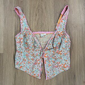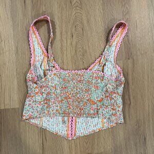 American Eagle Pink Orange Blue Floral Crop Top Open Tie Front Size Medium