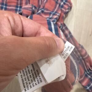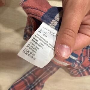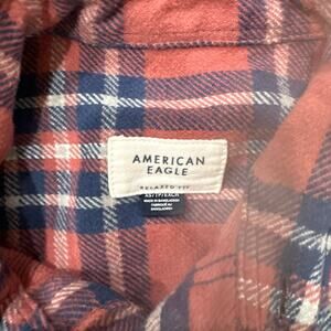 American Eagle Pink Orange Blue Plaid Cotton Button Up Flannel Shirt