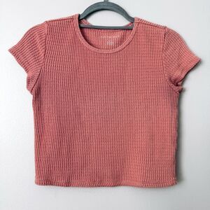 American Eagle Pink Waffle Knit Short Sleeve Baby Tee Size Small