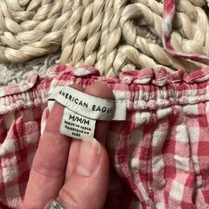 American Eagle Pink & White Gingham Crop Tank Size M