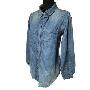 American Eagle Pintuck Faded Denim Button Front Shirt