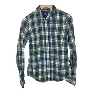 American Eagle Plaid Button Down Shirt Preppy Womens Size 4 Long Sleeve