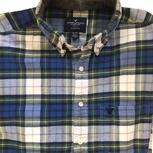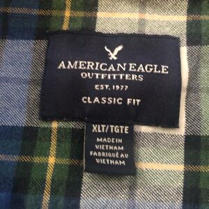 American Eagle Plaid Button Down Shirt XLT Classic Fit 100% Cotton Blue Green