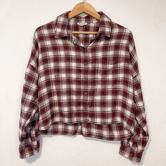 American Eagle Plaid Cropped Button Down Flannel Size M