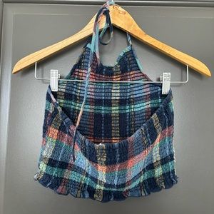 American Eagle Plaid Halter Festival Top Smocked Adjustable Stretchy Size Small