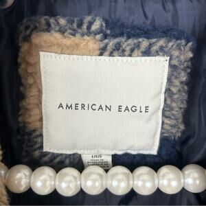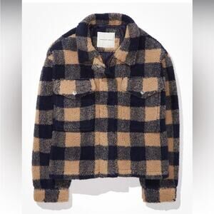 American Eagle Plaid Print Sherpa Zip Up Jacket Size L
