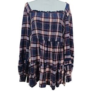 Warm wool-blend American Eagle plaid peacoat in women’s XXL. Features a double-breasted front, full polyester lining, buttoned cuffs, and flap pockets. Classic hip-length silhouette in a rich red/navy/cream check pattern. Excellent pre-owned condition. Item Details Size: Women’s XXL Shell: 40% wool / 60% rayon Lining/Filling: 100% polyester Double-breasted button closure Front flap pockets Back belt tab detail Hip length Condition: Excellent American Eagle wool coat XXL, women’s plaid peacoat, AE winter coat, wool blend jacket, red navy check coat, warm lined coat, classic peacoat women