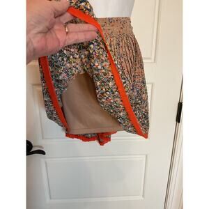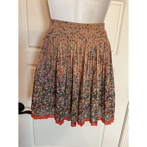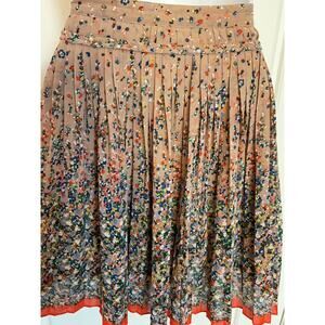 American Eagle Pleated Lined Floral Skirt w/ Blue Flowers Orange Trim Plus 18