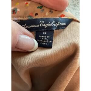 The American Eagle Pleated Lined Floral Skirt with Blue Flowers and Orange Trim in size 18 is a stylish and versatile piece for women. Made from polyester, this short skirt features a floral pattern in beige with blue flowers and orange trim, making it perfect for various occasions such as travel, weddings, parties, casual outings, work, and business meetings. The pleated design adds a touch of elegance, while the zip closure makes it easy to wear. With a machine washable garment care instruction, this skirt is practical and easy to maintain. Ideal for summer, fall, and spring seasons, this skirt from American Eagle Outfitters is a must-have for your wardrobe.