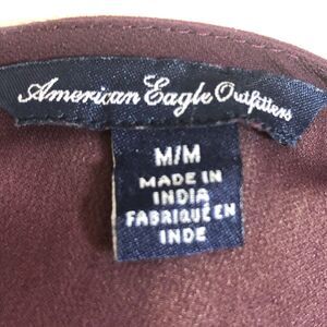 This sleeveless American Eagle top in plum purple features pleats accentuated by flower appliques for a refined look. Its polyester fabric ensures comfort and a flattering fit.