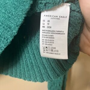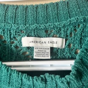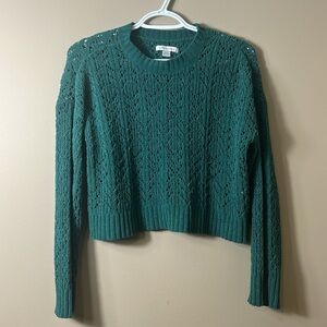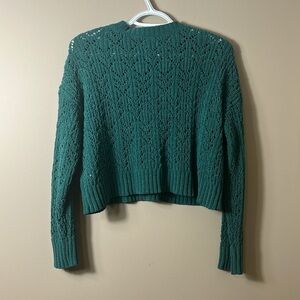 American Eagle Pointelle Cropped Green Crewneck Sweater