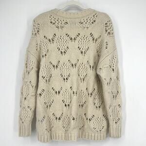 American Eagle Pom Pom Open Knit Sweater Cream XS Cozy Crew Coastal Preppy Boho