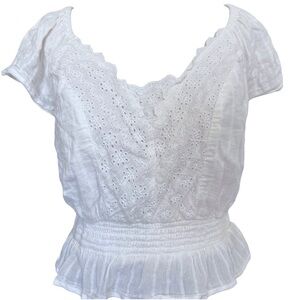 American Eagle Puff Sleeve Eyelet Bubble Blouse Size Medium