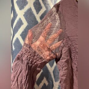 American Eagle Purple Blouse Lace Arm Detailing Size M