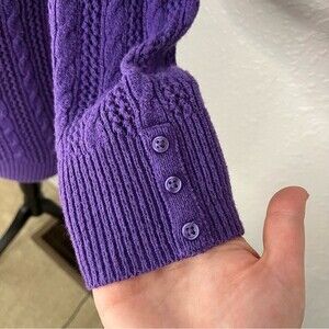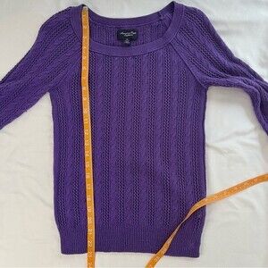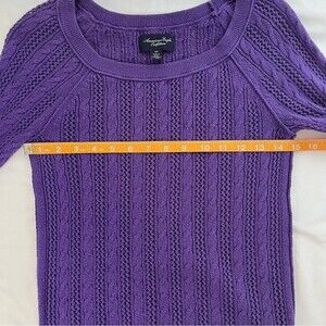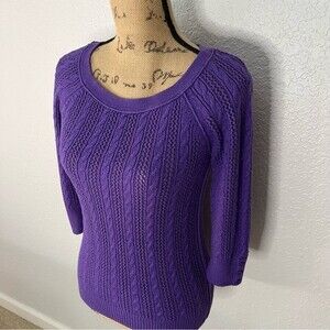 American Eagle Purple Size S Wool Blend Cable Knit Round Neck 3/4 Sleeve Sweater
