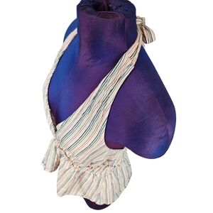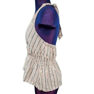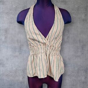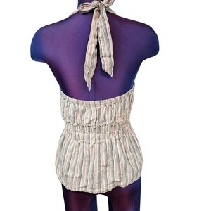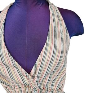 American Eagle Rainbow Striped Linen Blend Flounce Halter Top Size Small P38