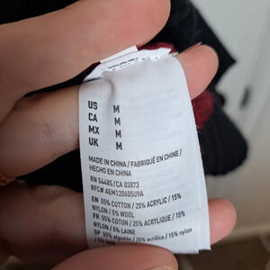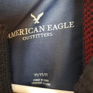 American Eagle Red Black Plaid Knit Button Up Mock Neck Cardigan Sweater Sz M