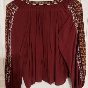 #AmericanEagle #AEO #BohoTop #EmbroideredBlouse #PeasantBlouse #FallStyle #BurgundyTop #FestivalVibes