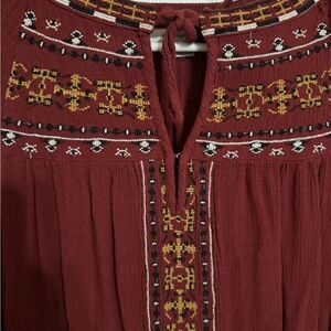 American Eagle Red Embroidered Boho Blouse
