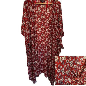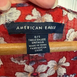 American Eagle Red Floral Kimono Lightweight Viscose Cover Up Size O/S