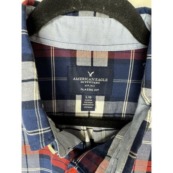American Eagle Red White Blue Cotton Plaid Button down Large