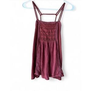 American Eagle Red Women’s Tank Boho Lace Eyelet Top Size S