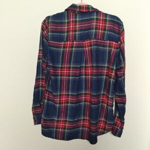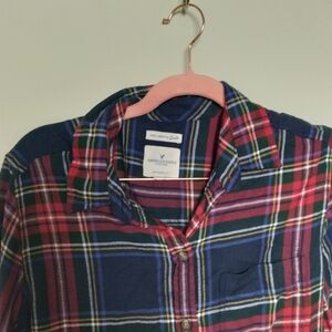 American Eagle Red and Blue Plaid Long Sleeve Boyfriend Flannel Button Shirt Med