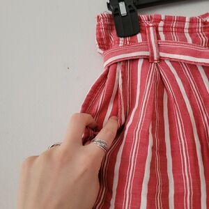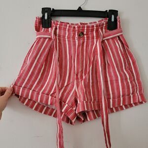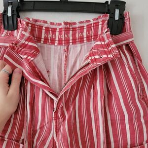American Eagle Red/White Striped Paper Bag Style Shorts Cuffed 2