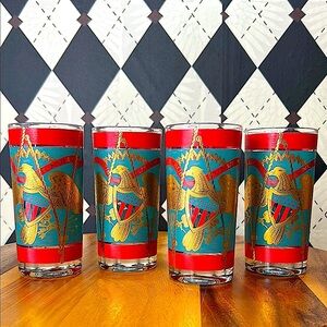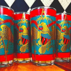American Eagle & Regimental Drum Cera Glass Set of 4 | Americana Barware