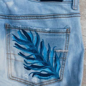 These jeans are the perfect piece to add a bit of handmade love to any outfit. They are originally from American Eagle, hand-dyed and painted.