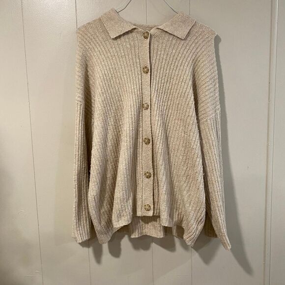 American Eagle Ribbed Button Front Cardigan Women’s Medium – Beige Collared Swea
