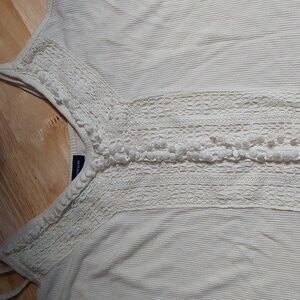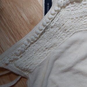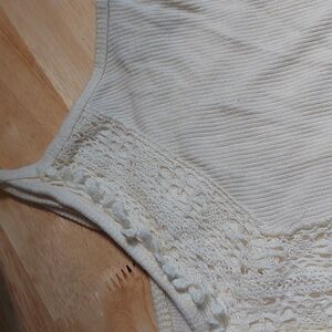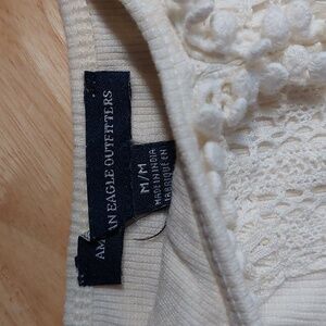 American Eagle Ribbed Knit Crochet Cropped Tank Top Adjustable Straps Ivory M