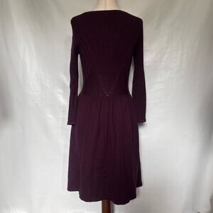 Purple American Eagle Long Sleeve Pointelle & Rib Knit Fit & Flare Sweater Dress