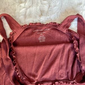 American Eagle Ribbed Ruffle Cropped Tank Top Red Rust