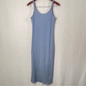 American Eagle Ribbed Stretch Knit Side Slit Soft Blue Bodycon Maxi Dress Size S