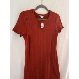American Eagle Ribbed T-Shirt Dress Short Sleeve Rust Boho Casual Fall Layer NEW