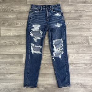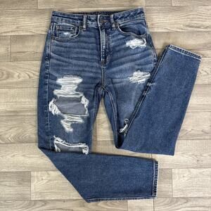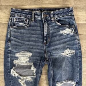 American Eagle Ripped High Rise Skinny Mom Jeans Medium Wash sz 2