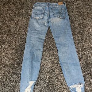 Light wash- American Eagle jeans- Ripped in the front and back - SIZE 2 SHORT- in good condition