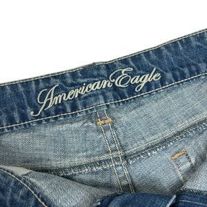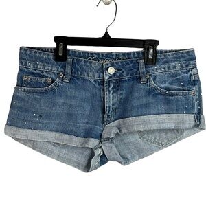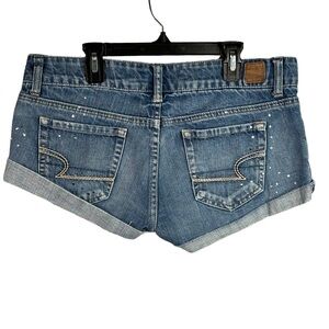 American Eagle Rolled Cuff Denim Cut Off Shorts Size 8 Tiny Paint Drops Raw Hem