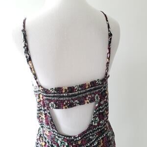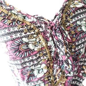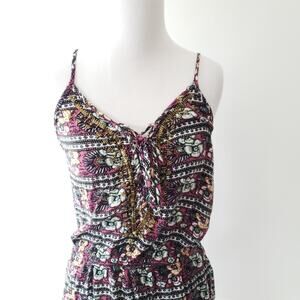 American Eagle Romper Beaded Purple Floral Viscose Cut Out Back Medium