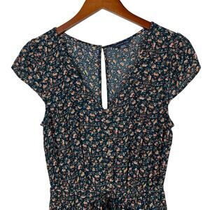 American Eagle Romper Black Floral Short Sleeve Women's M
