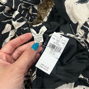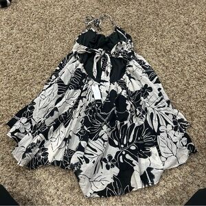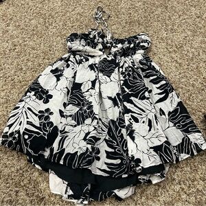 American Eagle Ruched Halter Mini Dress Tropical Print Black&White Sz XL NWT