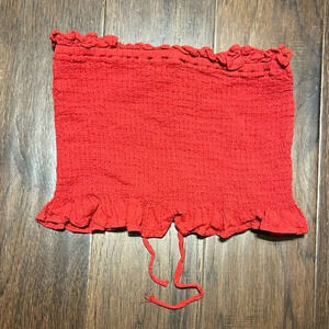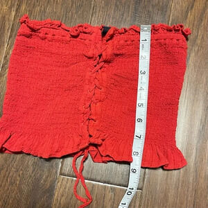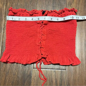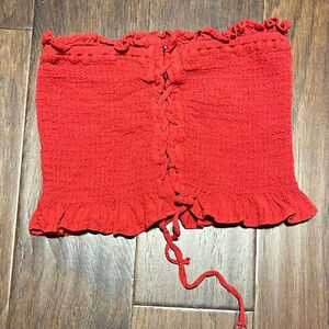 American Eagle Ruffle Lace Up Smocked Corset Tube Top Y2K