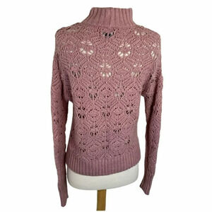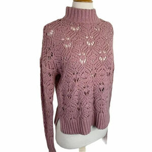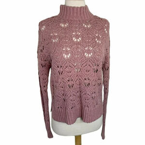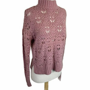 American Eagle S Mock Neck Mauve Knit Sweater Openwork Pullover Long Sleeve Top