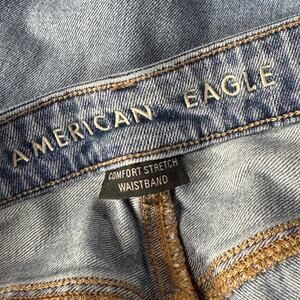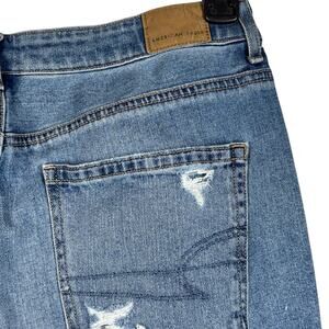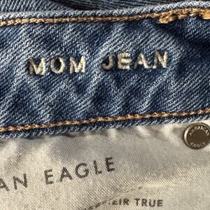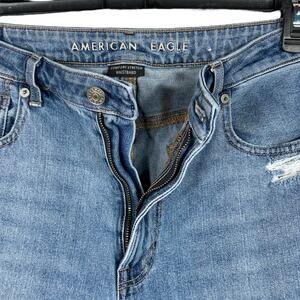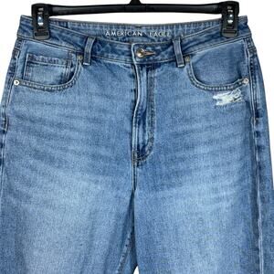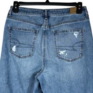 American Eagle SZ 12 Mom Jeans Distressed Rips Hi-Rise Zip-Fly Medium Wash Blue