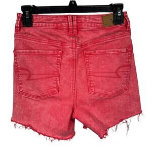 American Eagle SZ 2 Shorts Mid-Rise Stretch Zip-Fly Rear Frayed Hems Pink Wash