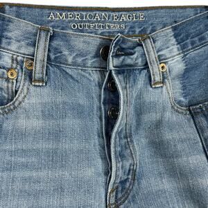 American Eagle SZ 6 Vintage Hi-Rise Ankle Jeans Button-Fly 2-Tone Frayed Pockets